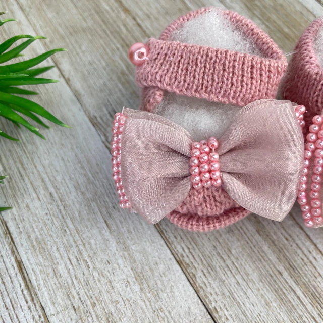 O Sapatinho de Tricô 3 Flores, é uma peça muito delicada e sofisticada, confeccionado artesanalmente para os pezinhos delicados do bebê.